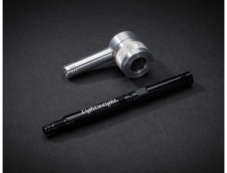 - One 56 mm valve extension black anodized with white Lightweight lettering.