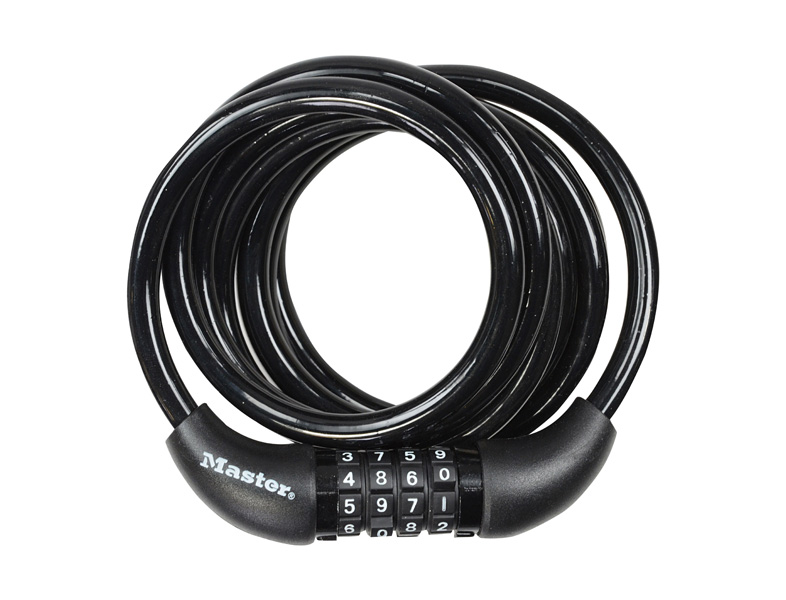 The Master Lock No. 8221EURDPRO Set-Your-Own Combination Cable Lock is 1,8m long and features a 8mm diameter twisted steel for maximum strength and flexibility. The protective vinyl coating protects against scratches. The 4 dial combination security offers keyless convenience. The Limited Lifetime Warranty provides peace of mind from a brand you can trust.